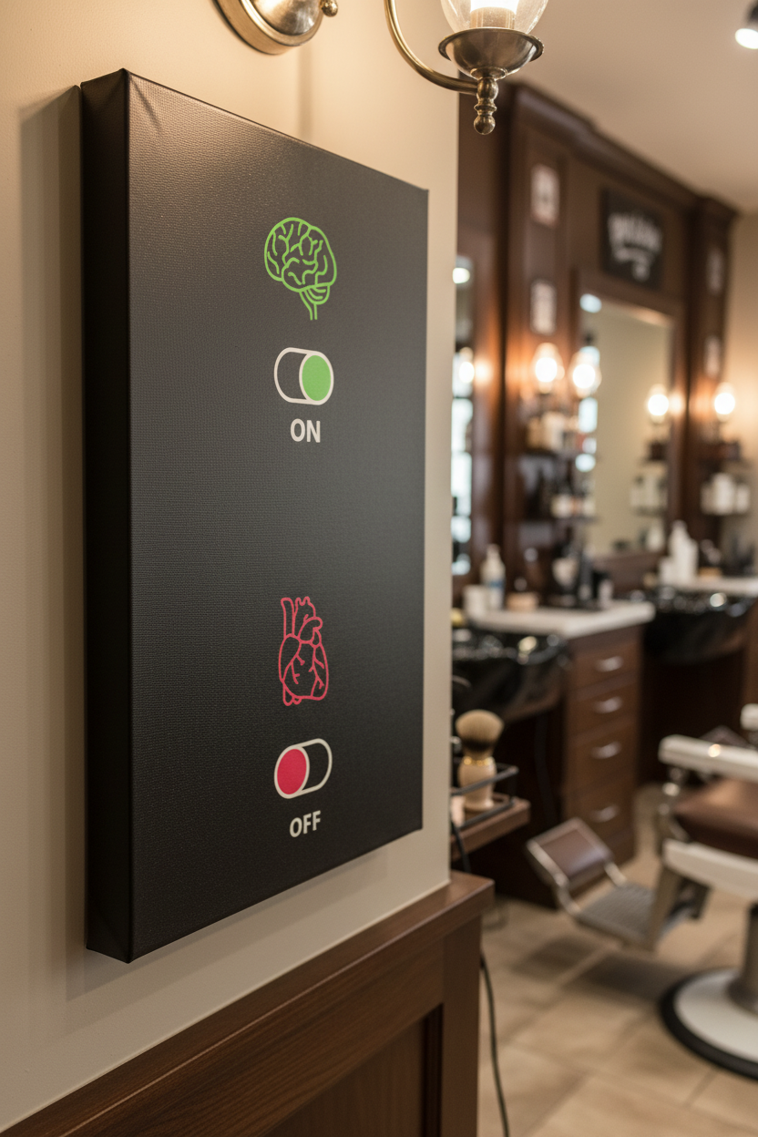 Zihnimizin berrak, mantığımızın ise ön planda olduğu anları temsil eden bu özel kanvas tablo, modern yaşamın getirdiği denge arayışına sanatsal bir yorum getiriyor. Koyu zemin üzerinde parlayan yeşil beyin ve açık "ON" düğmesi, aklın gücünü vurgularken, kırmızının canlı tonlarındaki kalp ve kapalı "OFF" düğmesi, duygusal dinginliği ya da derin düşünce anlarını sembolize eder. Bu çarpıcı kontrast, mekanınıza sadece estetik bir dokunuş katmakla kalmayacak, aynı zamanda izleyicilere düşündürücü bir mesaj sunacaktır. Oturma odası, çalışma odası ya da ofisiniz için mükemmel bir seçim.