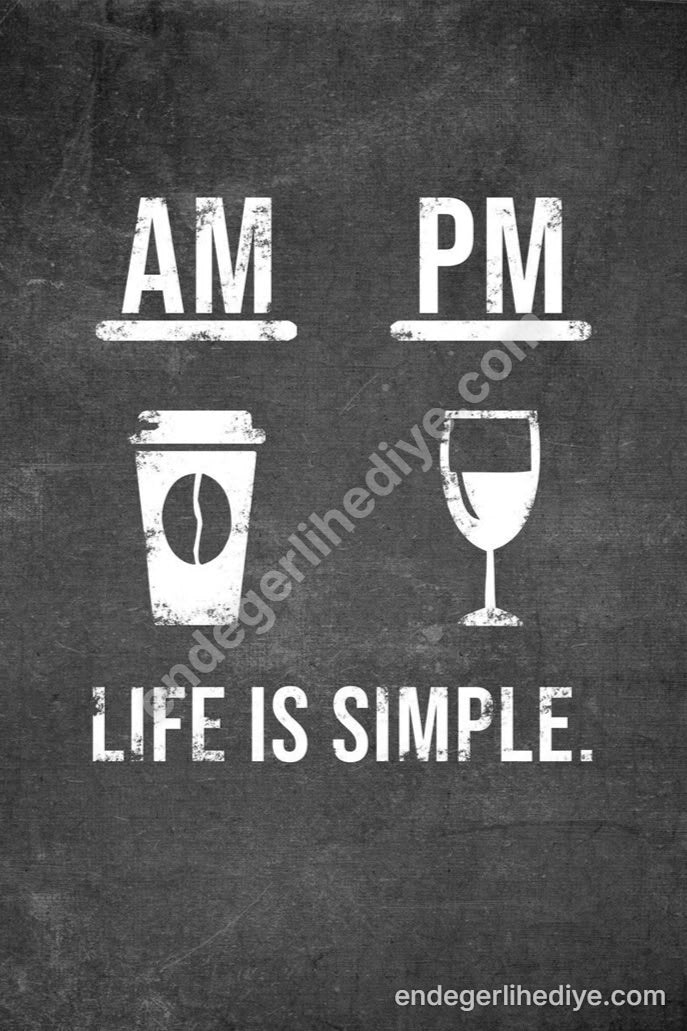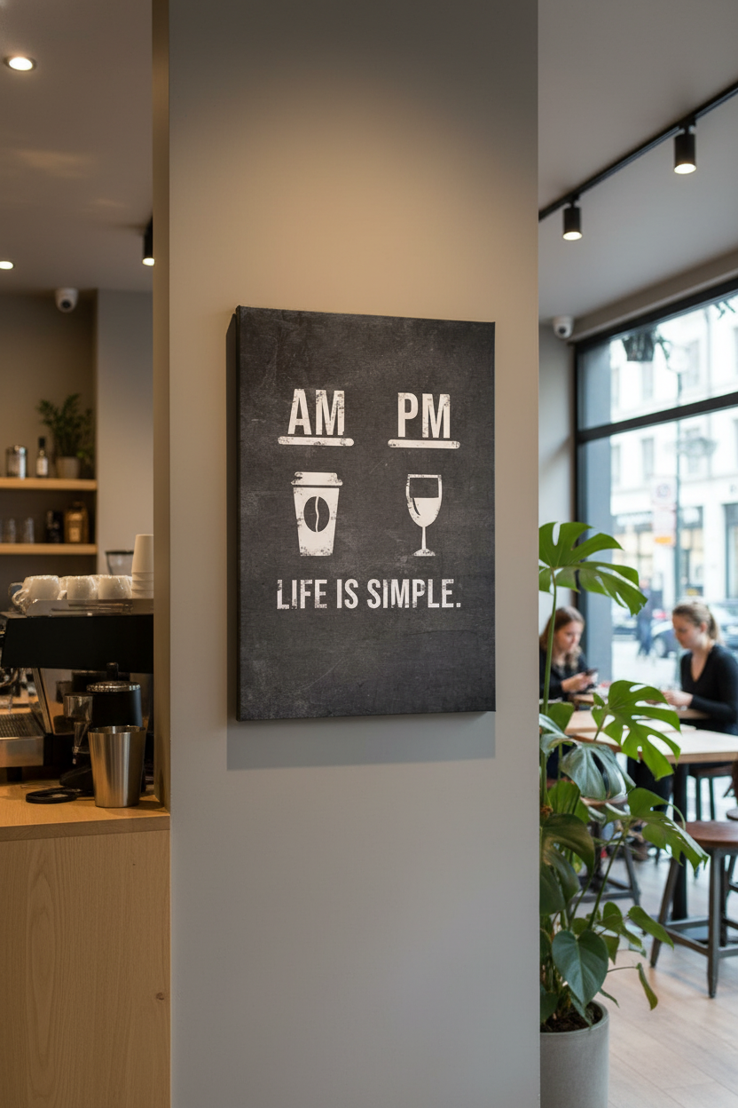 AM PM Kahve Şarap Hayat Basittir Kanvas Tablo