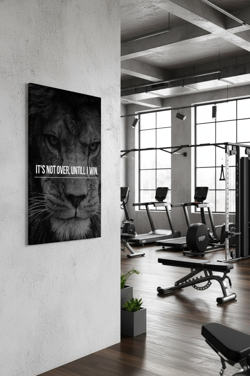 Bu kanvas tablo, vahşi doğanın en kudretli simgesi olan aslanın kararlı bakışlarını ve "IT'S NOT OVER, UNTIL I WIN." mottosunu odanıza taşıyor. Her bakışınızda size hedeflerinize ulaşma azmini hatırlatacak, en zor anlarınızda bile pes etmemeniz için ilham verecek. Siyah beyaz tonların derinliği, aslanın kudretini ve motivasyonun gücünü vurgularken, bulunduğunuz her ortama sofistike ve güçlü bir atmosfer katıyor. Özellikle spor salonları, çalışma odaları veya kişisel gelişim alanları için mükemmel bir seçimdir. Bu tablo sadece bir dekorasyon değil, aynı zamanda ruhunuzu besleyen bir ilham kaynağıdır.