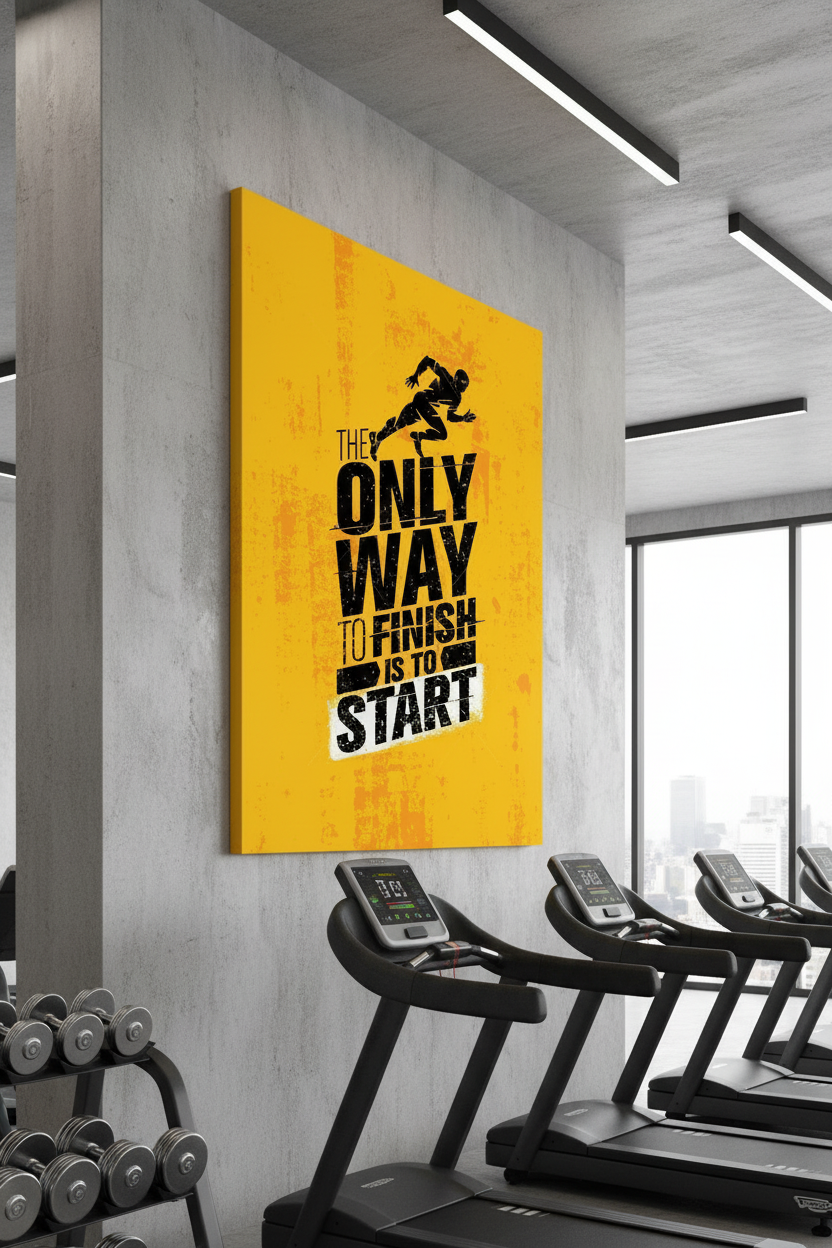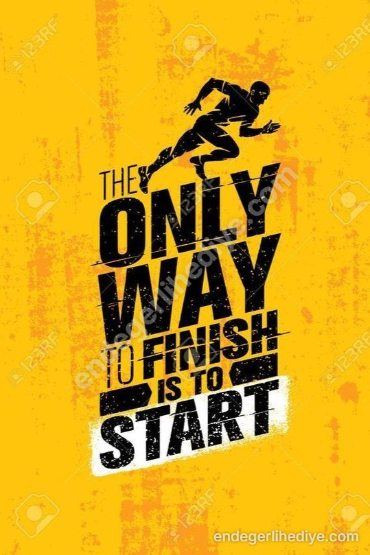 Bu özel kanvas tablo, hayallerinize giden yolda ilk adımı atmanın önemini vurgular. Canlı sarı zemini, dinamik sporcu silueti ve çarpıcı siyah yazısıyla enerjiyi ve azmi duvarlarınıza taşır. 'Başlamak, bitirmenin tek yoludur' mesajı, her baktığınızda sizi harekete geçmeye teşvik edecek, erteleme alışkanlığınızı kırmanıza yardımcı olacak güçlü bir hatırlatıcıdır.Antrenman alanınıza, çalışma odanıza veya yaşam alanınıza asarak sürekli motive kalın. Hedeflerinize ulaşmanız için gereken cesareti ve kararlılığı size fısıldayan bu sanat eseri, yaşamınıza pozitif bir dokunuş katacak.