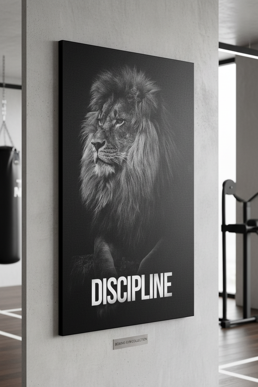 Bu etkileyici kanvas tablo, asaleti ve gücü temsil eden bir aslanın kararlı bakışını, "DISCIPLINE" kelimesiyle birleştirerek mekanınıza ilham verici bir enerji katıyor. Siyah beyazın zamansız uyumu, odanıza derinlik ve sofistike bir atmosfer getirirken, aslanın duruşu ve disiplin mesajı, hedeflerinize odaklanmanızı hatırlatacak. Her detayında gücü ve motivasyonu hissedeceğiniz bu eser, boks salonunuzdan çalışma odanıza kadar her yerde ruhunuzu besleyecek.