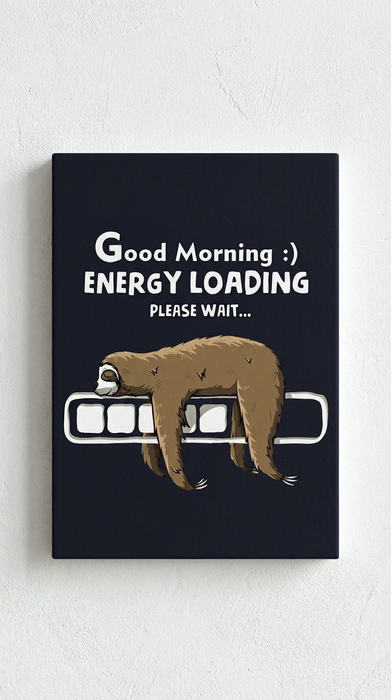 Energy Loading Sloth – Eğlenceli Kafe Kanvas Tablo