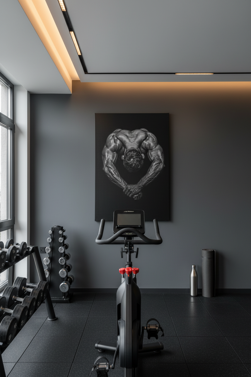 Bu sanatsal kanvas tablo, insan vücudunun sınırlarını zorlayan azmi ve estetiği karanlık ile ışığın büyüleyici dansıyla birleştiriyor. Siyah beyaz tonların derinliği, kasların her bir detayını ve yoğun antrenmanın getirdiği eşsiz formu vurgulayarak mekana güçlü bir karakter katıyor. Bu eser, sadece bir dekorasyon öğesi değil, aynı zamanda kararlılığın, disiplinin ve kişisel gelişimin bir anıtıdır. Spor salonu atmosferini evinize veya çalışma alanınıza taşıyarak her bakışta size ilham verecek, hedeflerinize ulaşmanız için motivasyonunuzu tazeleyecek. Bu tablo, zindeliğe ve güce adanmış ruhların vazgeçilmez bir simgesi olacak.