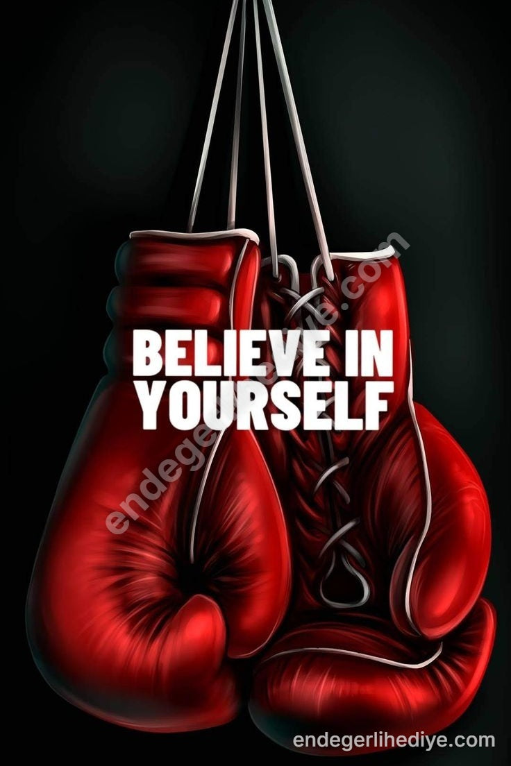 Hayatın ringinde savaşmaya hazır mısınız? Bu çarpıcı kanvas tablo, güçlü bir duruş ve sarsılmaz bir inanç ruhunu odanıza taşıyor. Koyu bir fon üzerinde asılı duran parlak kırmızı boks eldivenleri, içindeki gücü keşfetmeniz için bir davet niteliğinde. "BELIEVE IN YOURSELF" mesajı, her baktığınızda size ilham verecek, hedeflerinize ulaşmanız için sizi motive edecek. Spor salonunuzda, çalışma odanızda veya kişisel alanınızda, bu tablo sadece bir dekorasyon öğesi değil, aynı zamanda bir yaşam felsefesinin yansıması olacak. Enerjisiyle mekanınızı dönüştürecek, kararlılığınızı pekiştirecek ve her adımda kendinize olan güveninizi artıracaktır.
