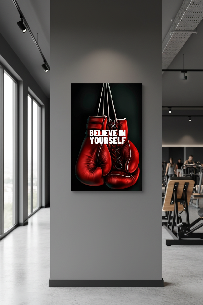 ÜRÜN ADI: İnan Kendine: Kırmızı Boks Eldivenleri Motivasyon Kanvas Tablo
