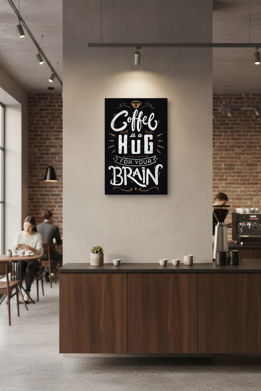 Sabahların vazgeçilmezi, günün kurtarıcısı kahvenizin ruhunu evinize taşıyın. "Coffee is a HUG FOR YOUR BRAIN" mesajıyla, kahvenin sadece bir içecek değil, aynı zamanda zihne bir kucaklama, bir rahatlama anı olduğunu hatırlatın. Bu özel tasarım kanvas tablo, siyahın asaletini ve beyazın saflığını kahvenin sıcak tonlarıyla birleştirerek modern ve samimi bir atmosfer yaratır. Ofisinizde çalışma motivasyonunuzu artıracak, mutfağınızda kahve keyfinize eşlik edecek ya da salonunuzda sohbetlerinize sıcaklık katacak eşsiz bir parça. Hayatın koşuşturmacasında küçük bir mola vermenin, kendinize ve zihninize iyi bakmanın önemini vurgulayan bu tablo, sevdikleriniz için de anlamlı bir hediye olabilir. Her baktığınızda sizi gülümsetecek, ilham verecek ve bir fincan kahvenin getirdiği huzuru anımsatacak. Kaliteli baskısı ve dayanıklı yapısıyla uzun yıllar duvarlarınızı süsleyecek.