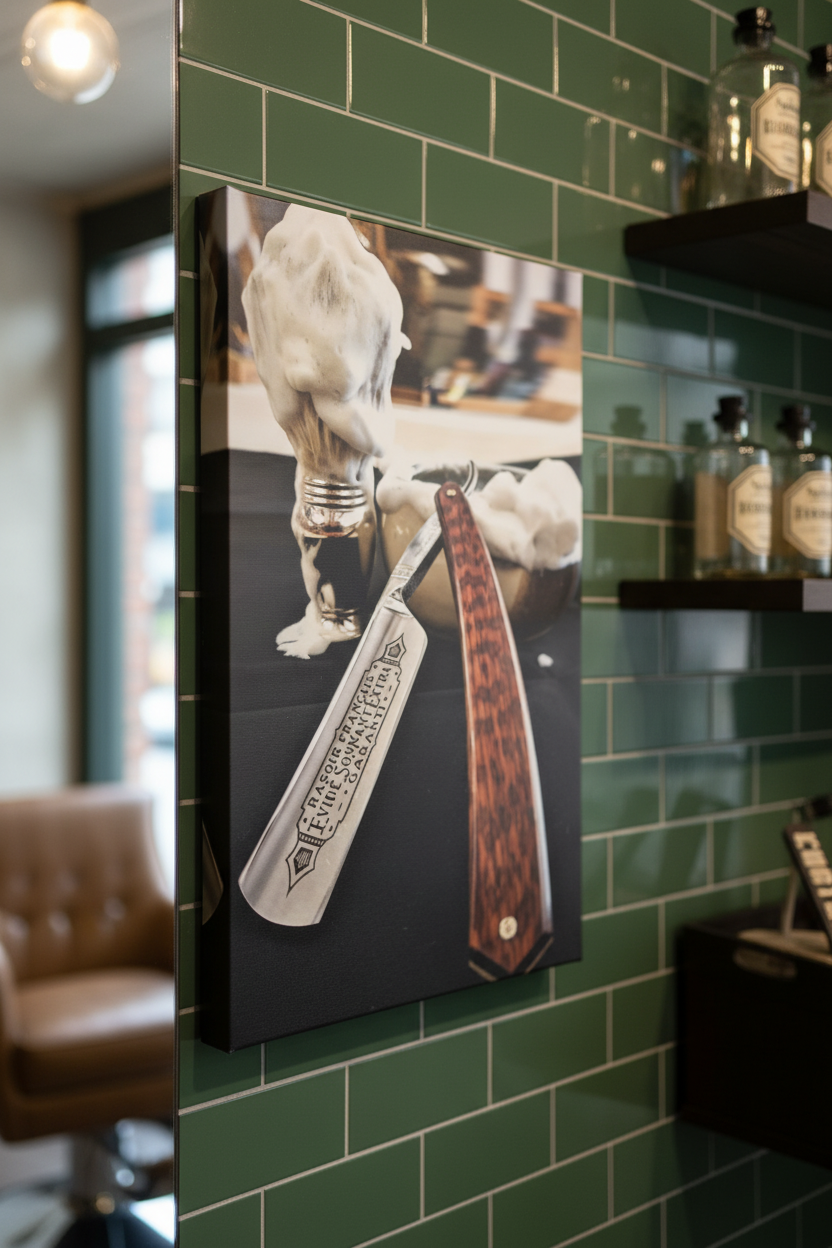 ÜRÜN ADI: Klasik Tıraş Ritüeli: Bay Kuaför Kanvas Tablo