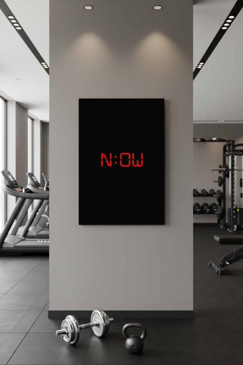 Hayallerinizi ertelemeyin, harekete geçmek için doğru an 'Şimdi'. Koyu, minimalist arka plan üzerinde dijital saat stilinde parlayan 'N:OW' yazısı, size her baktığınızda ilham verecek. Bu tablo, antrenmanlarınızda veya günlük hayatınızda anın gücünü hatırlatır, odaklanmanızı sağlar ve hedeflerinize ulaşmak için gereken o ilk adımı atmanıza teşvik eder. Spor salonunuzda, çalışma odanızda veya ilham almak istediğiniz her yerde modern ve güçlü bir atmosfer yaratın. Enerjinizi yükseltin, kararlılığınızı güçlendirin.