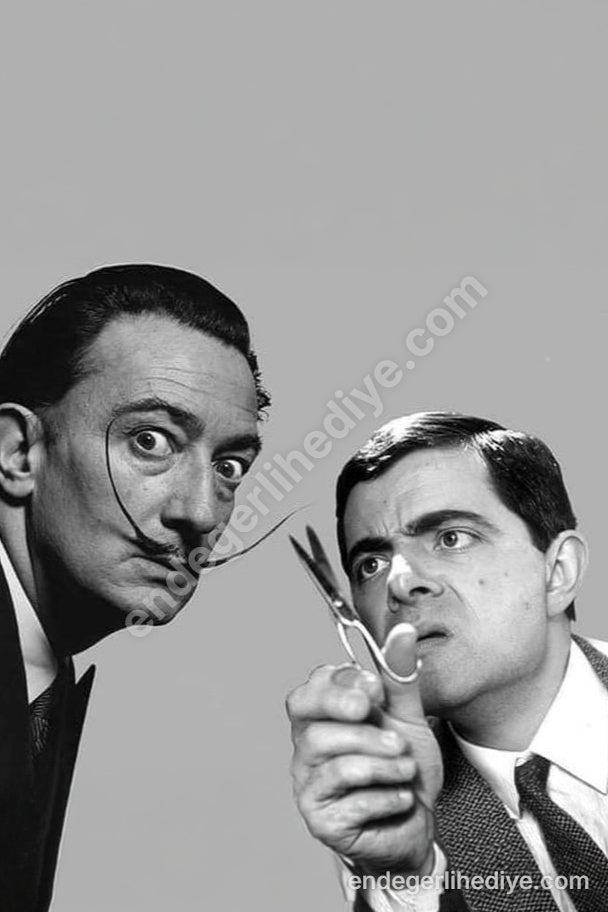 Sanat dünyasının ikonik figürü Salvador Dalí'nin meşhur bıyıkları, komedinin ustası Mr. Bean'in elindeki makasla karşılaşırsa ne olur? İşte bu kanvas tablo, sürrealizm ile absürt komediyi eşsiz bir an'da birleştiriyor. Dalí'nin şaşkın ve derin bakışları ile Mr. Bean'in kararlı ama komik ifadesi, odanıza neşe ve sanatsal bir derinlik katacak. Siyah beyazın zamansız estetiği, bu ikonik karşılaşmanın dramını ve mizahını çarpıcı bir şekilde vurguluyor. Evinizin veya ofisinizin duvarlarında sadece bir dekorasyon değil, aynı zamanda düşündürücü bir hikaye ve her bakışta yeni bir gülümseme yaratan bir sanat eseri olarak yerini alacak. Sanat ve mizahı aynı karede buluşturan bu eşsiz parça, her görenin ilgisini çekecek.