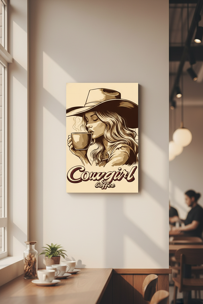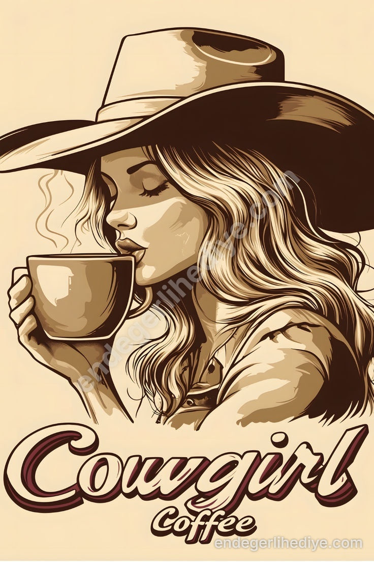 ÜRÜN ADI: Vintage Kovboy Kız Kahve Keyfi Kanvas Tablo